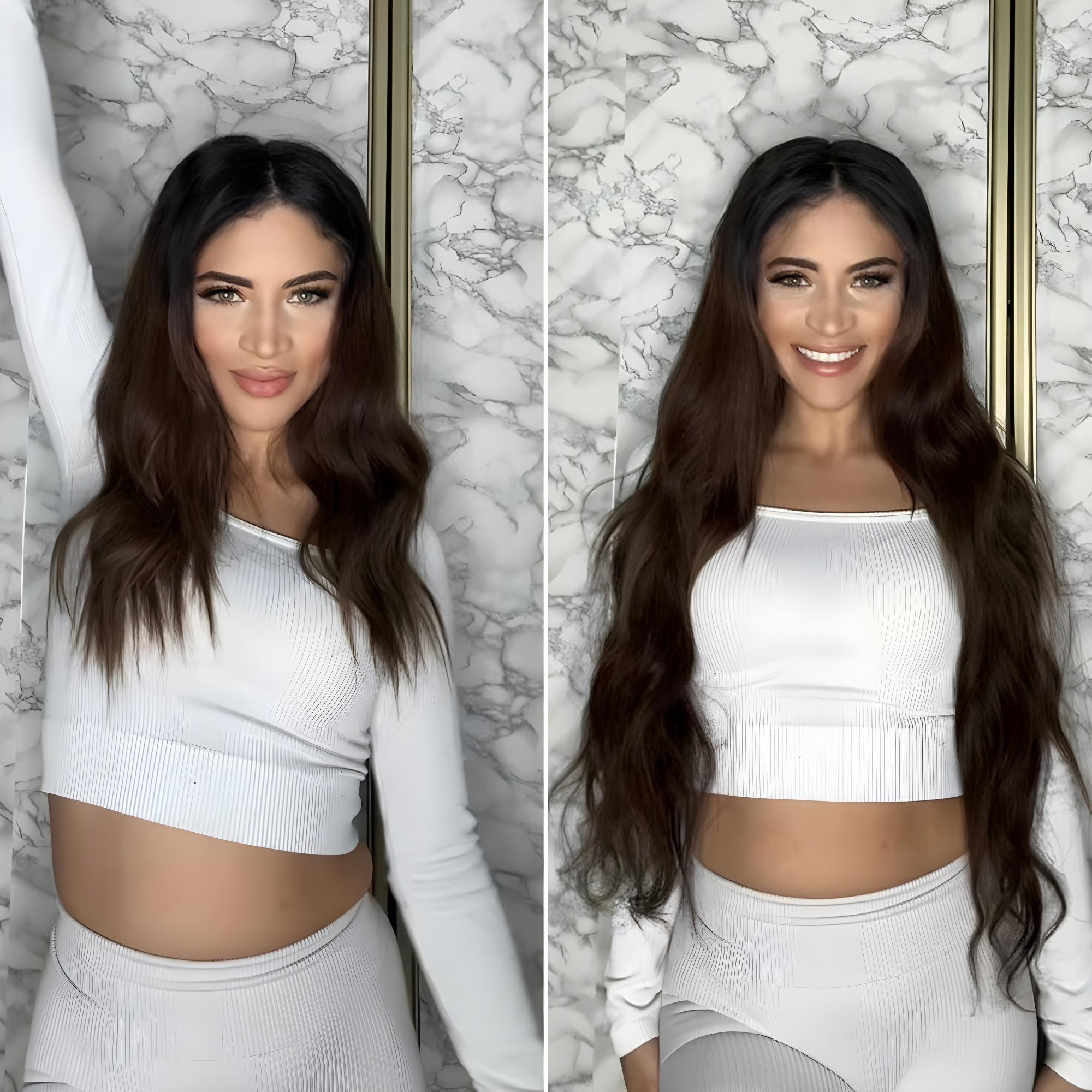 The difference this halo makes is HUGE. I can't believe how good it makes my hair look and how accurate the color matching is. It's also amazing quality, comfortable and hasn't shed any hair or gotten worse after washing.